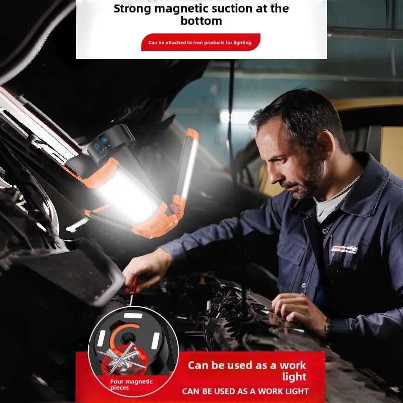 • Versatile Usage Scenarios: This rechargeable work light with a stand supports multiple configurations: as a tripod-mounted light, magnetic flashlight, hanging light, or table lamp. Perfect for garages, camping trips, outdoor gatherings, or as a mechanic gift for men, it’s a reliable tool for any situation.